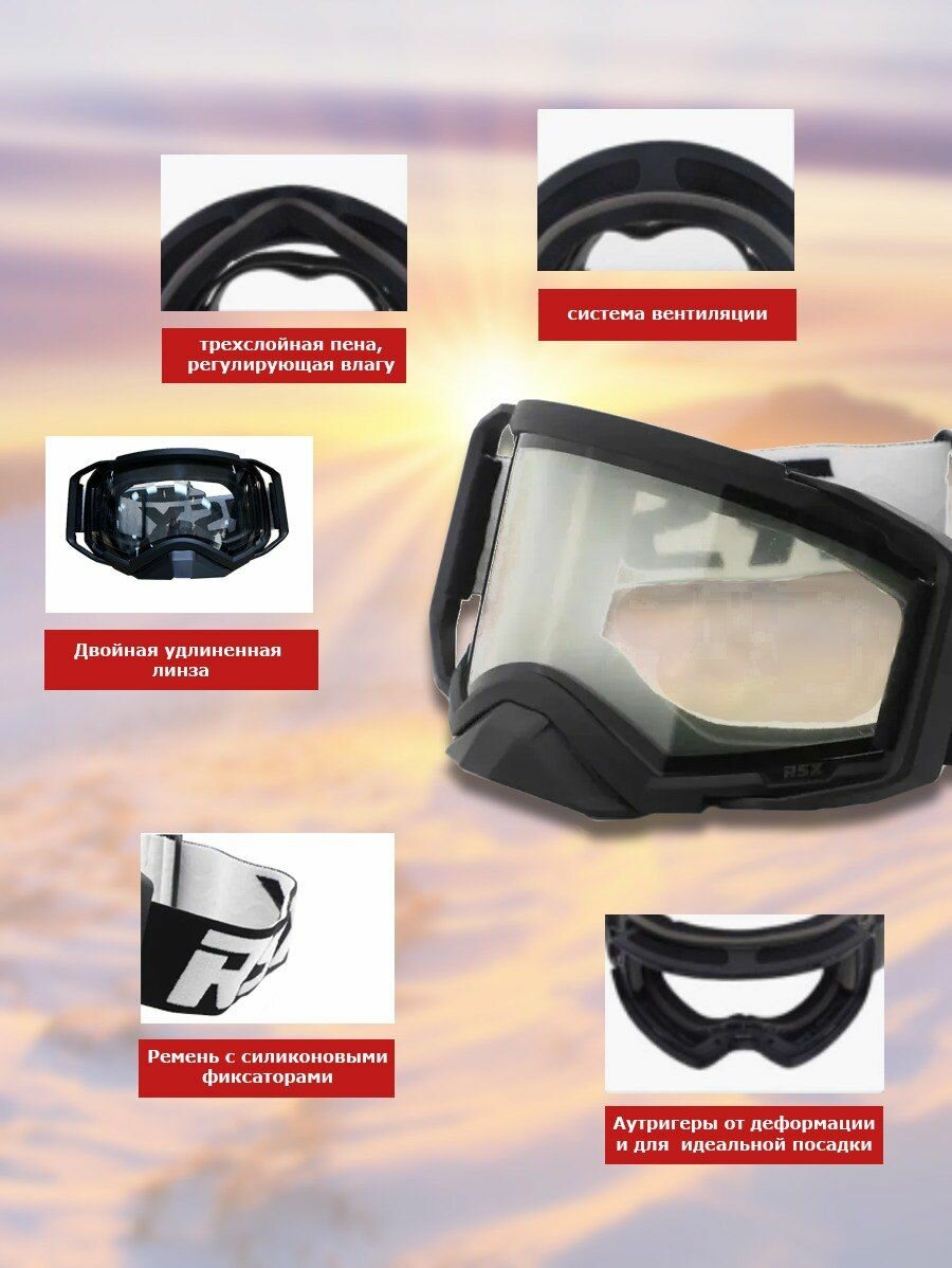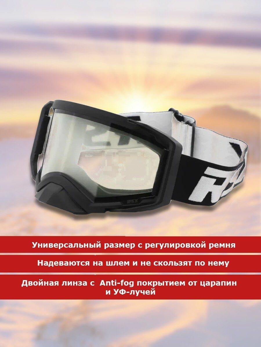 Очки горнолыжные, мотоочки, сноубордические, лыжные, снегоходные RSX Blizzard Black/Black Clear Lens двойное прозрачное стекло с двойной линзой: сравнение цен, характеристики, фото, актуальное наличие и цены.