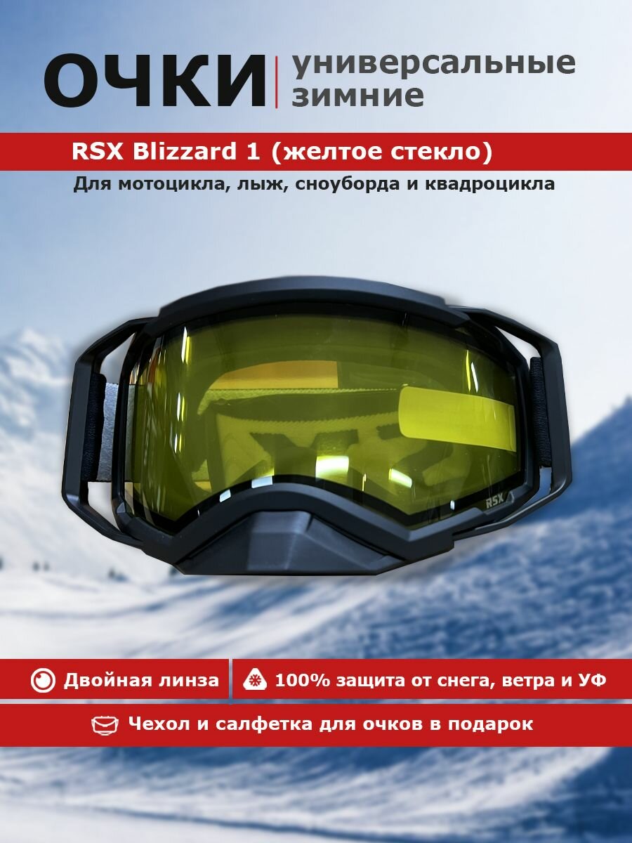 Очки горнолыжные, мотоочки, сноубордические, лыжные, снегоходные RSX Blizzard Black/Black Yellow двойное желтое стекло с двойной линзой: сравнение цен, характеристики, фото, актуальное наличие и цены.