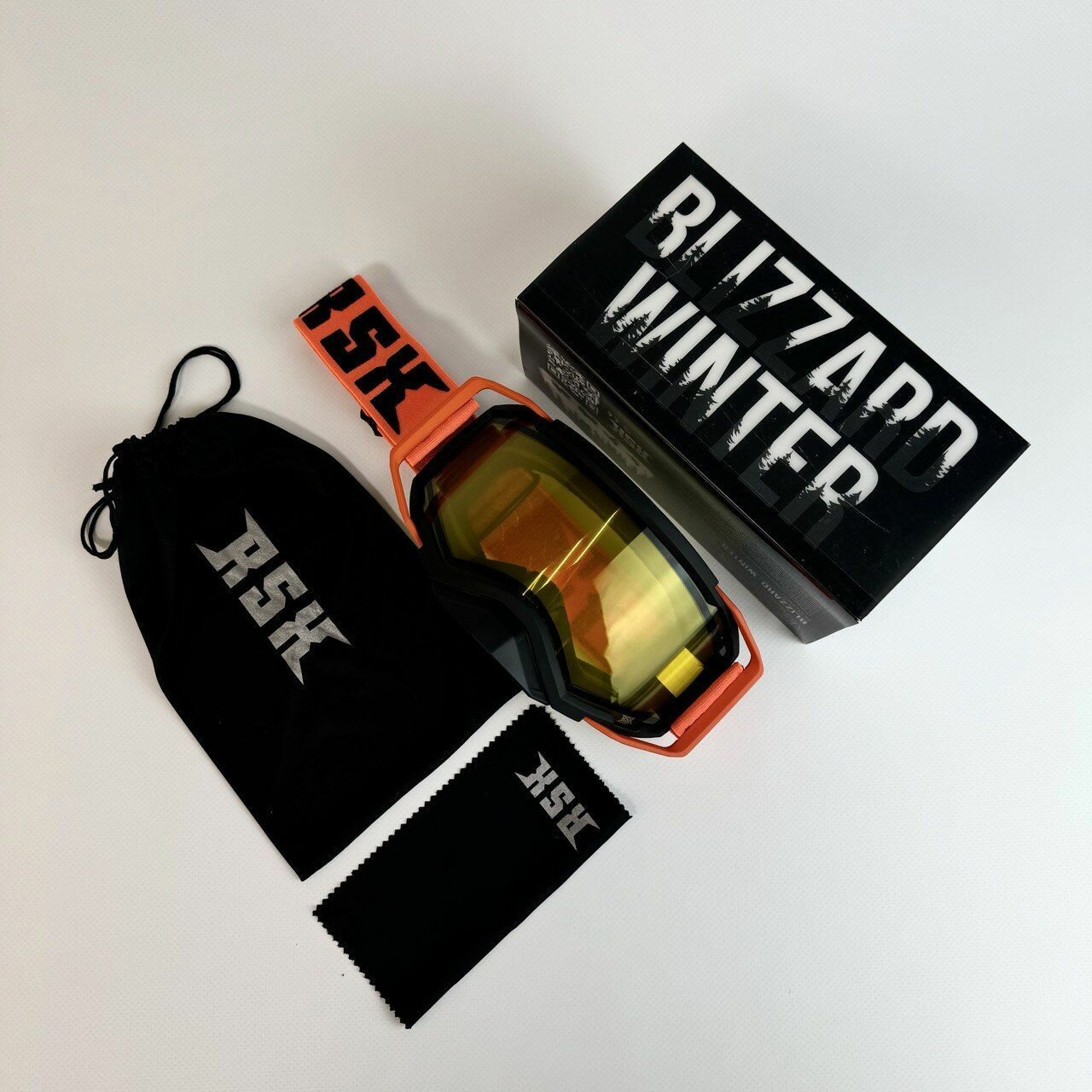 Купить Очки горнолыжные, мотоочки, сноубордические, лыжные, снегоходные RSX Blizzard Winter, черный/оранжевый/оранжевый двойное желтое стекло с доставкой по всей России.