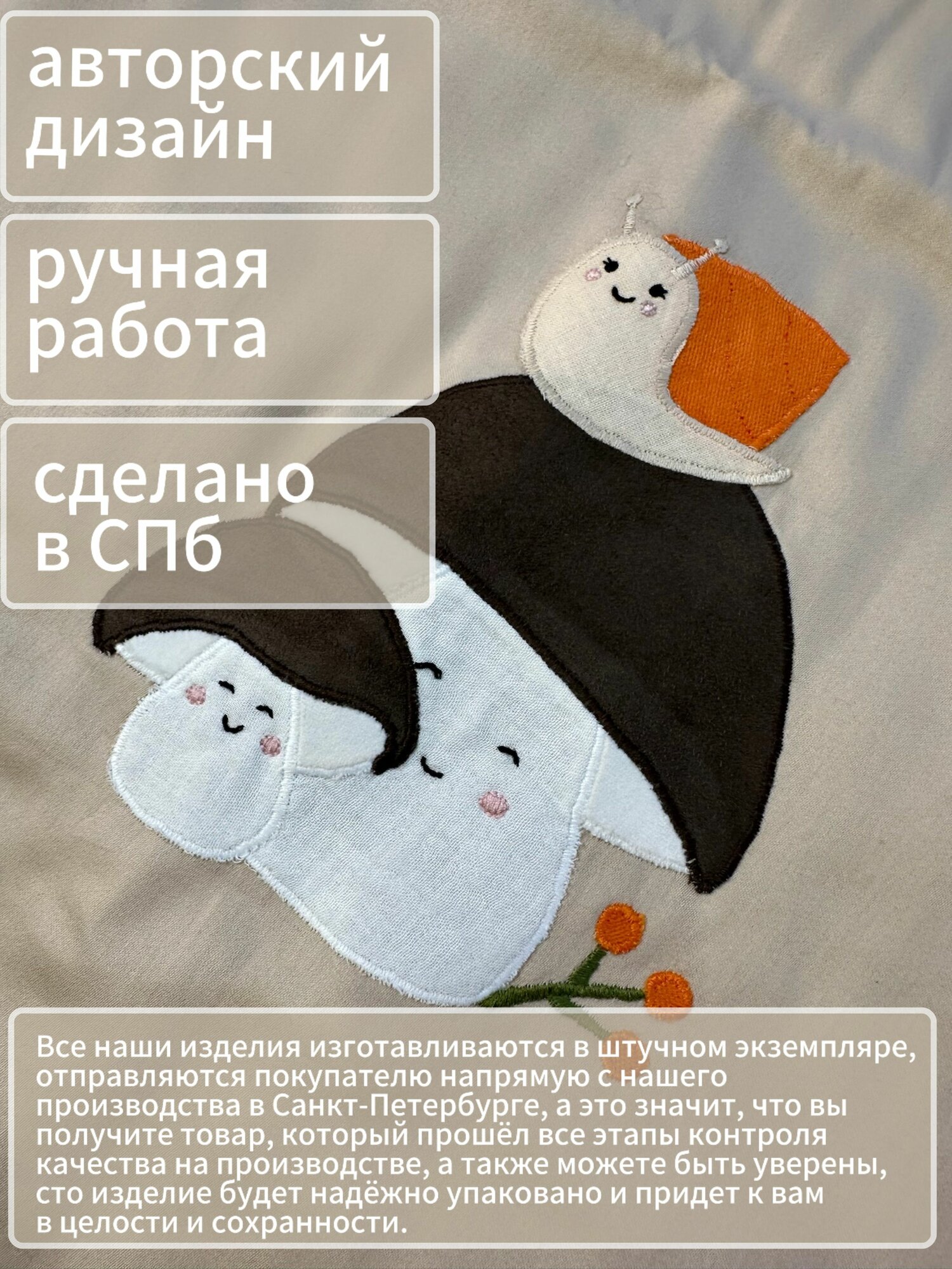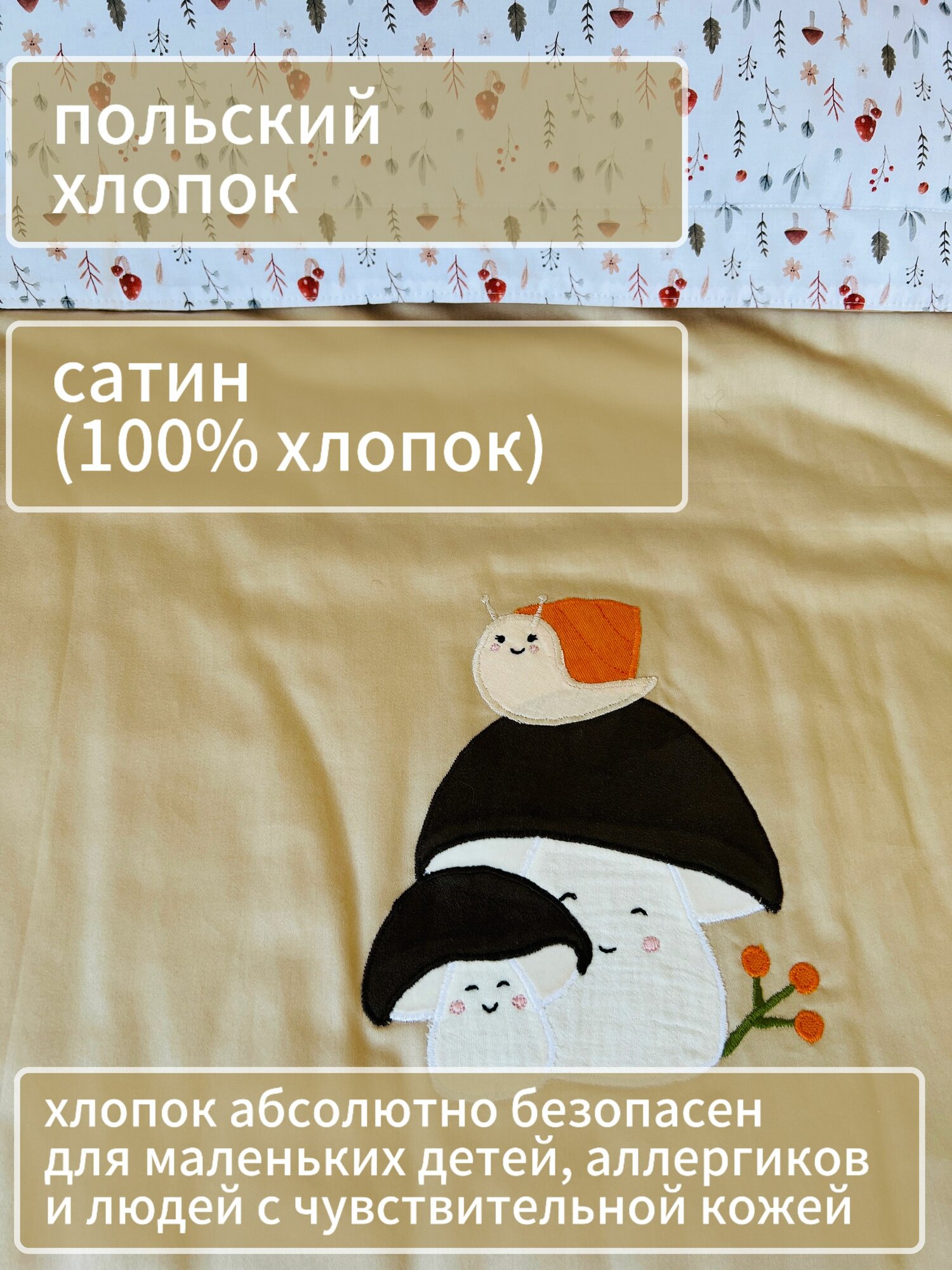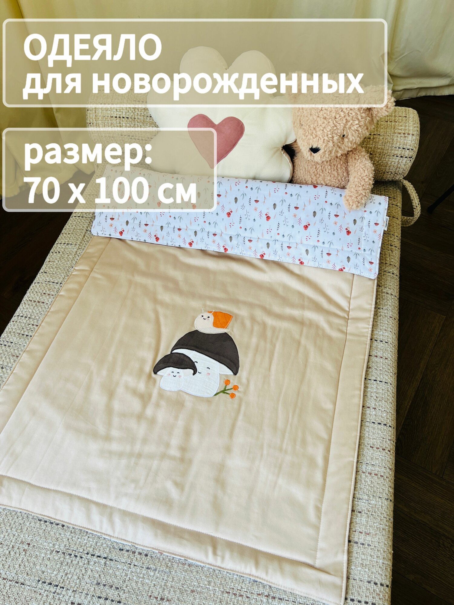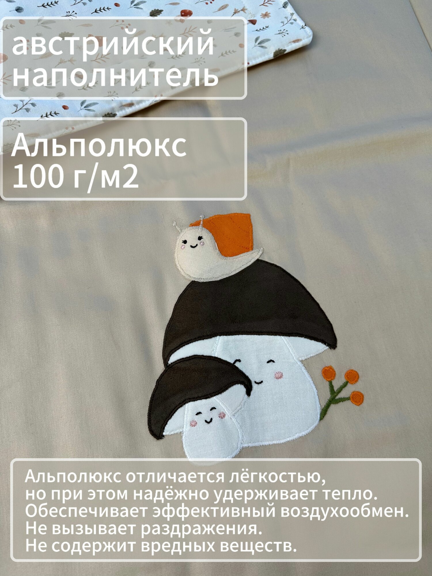Купить Одеяло детское для новорожденного в кроватку Moms 70х100 всесезонное стеганое гипоаллергенное декоративные аппликации Грибочки 100% хлопок сатин Альполюкс 150 г/м2 с доставкой по всей России.