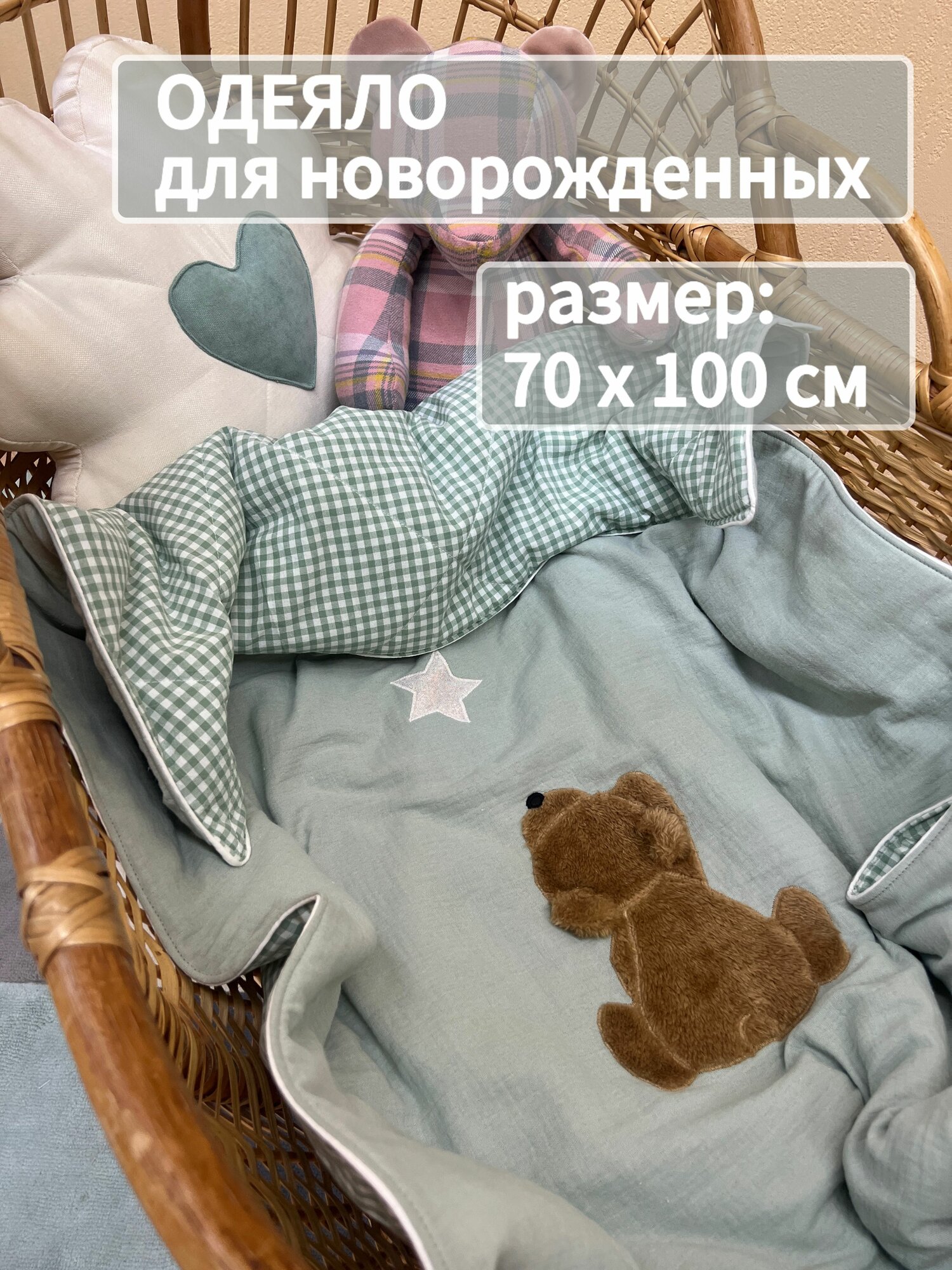 Купить Одеяло детское для новорожденного в кроватку Moms 70х100 всесезонное стеганое гипоаллергенное декоративные аппликации Мишка 100% хлопок Альполюкс 150 г/м2 с доставкой по всей России.