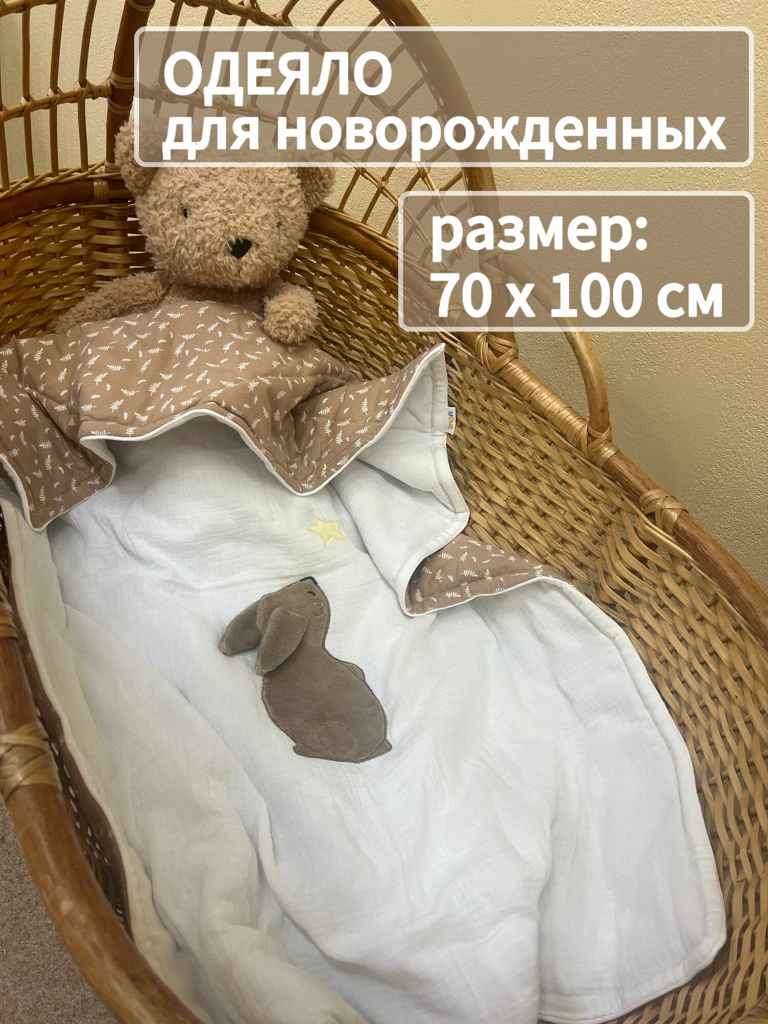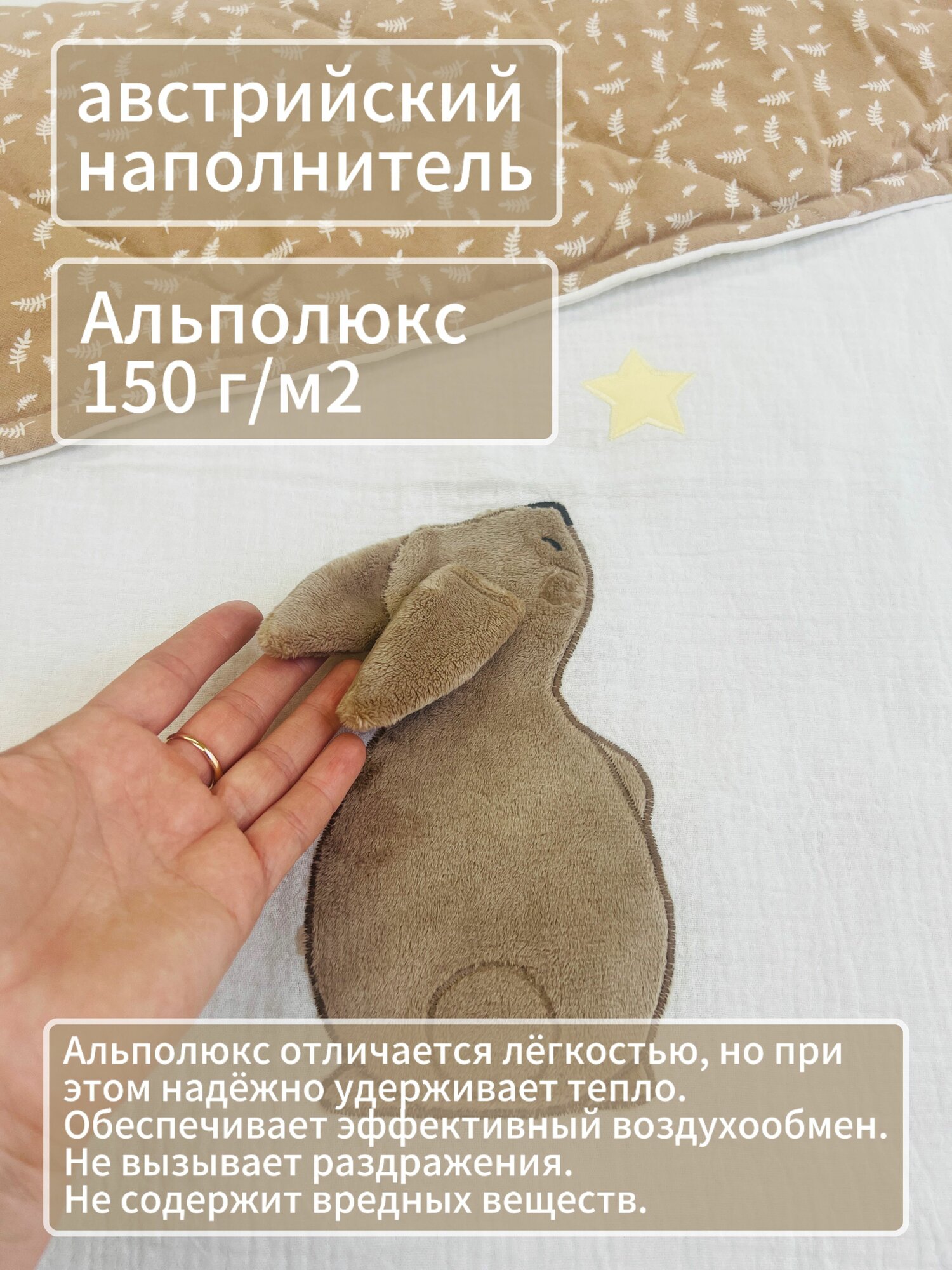 Купить Одеяло детское для новорожденного в кроватку Moms 70х100 всесезонное стеганое гипоаллергенное декоративные аппликации Зайчик на белом 100% хлопок Альполюкс 150 г/м2 с доставкой по всей России.