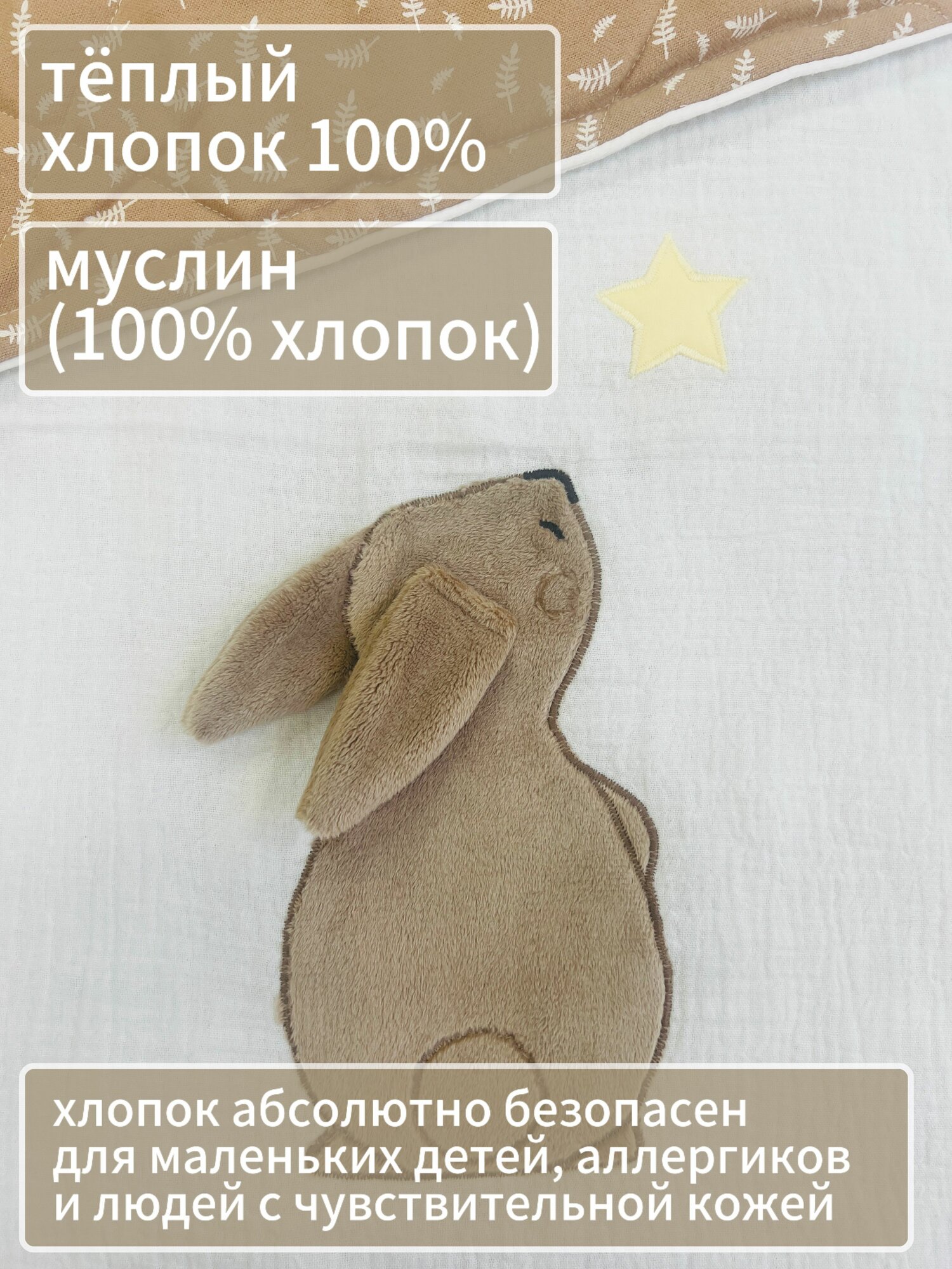 Одеяло детское для новорожденного в кроватку Moms 70х100 всесезонное стеганое гипоаллергенное декоративные аппликации Зайчик на белом 100% хлопок Альполюкс 150 г/м2: сравнение цен, характеристики, фото, актуальное наличие и цены.