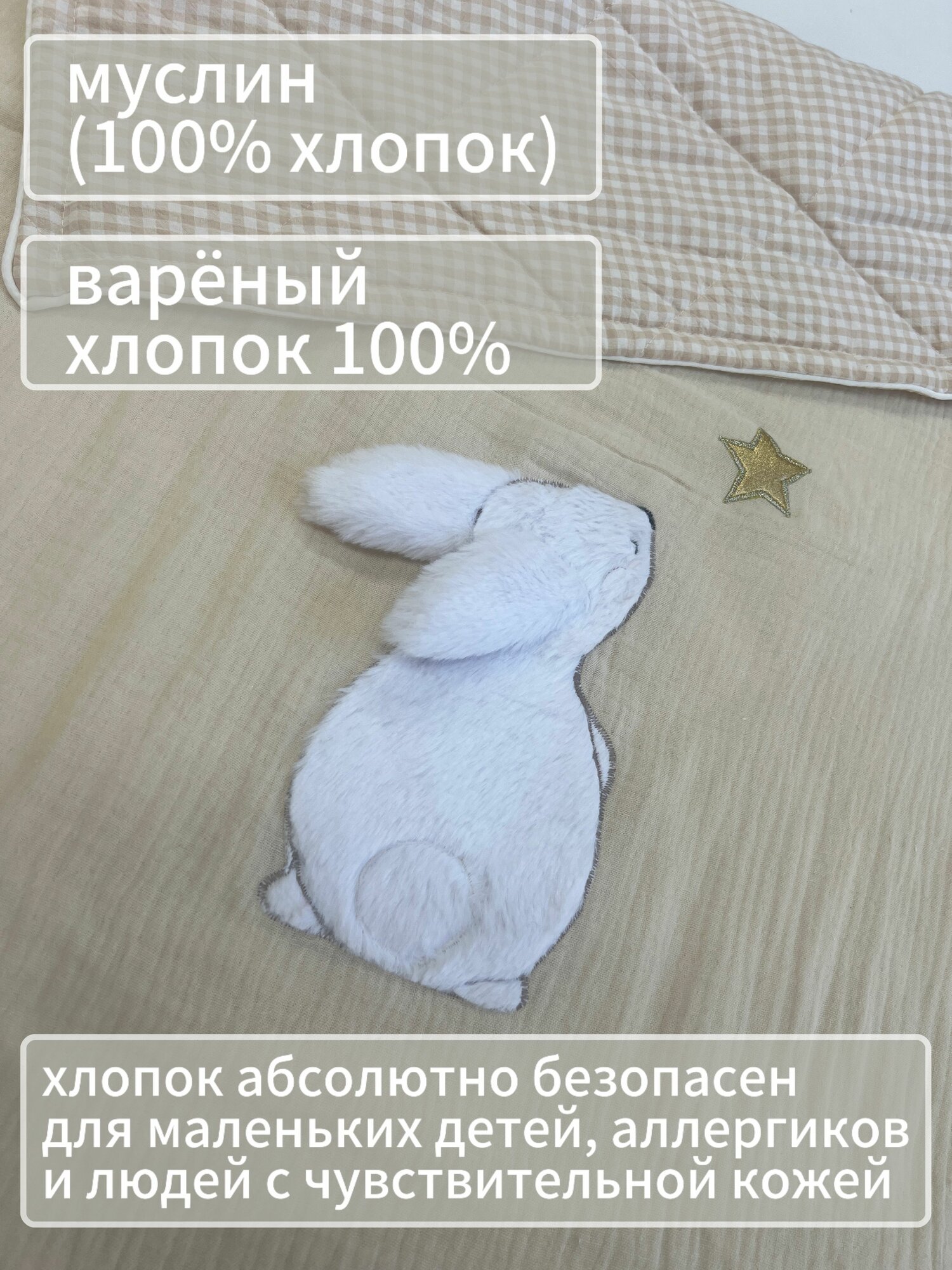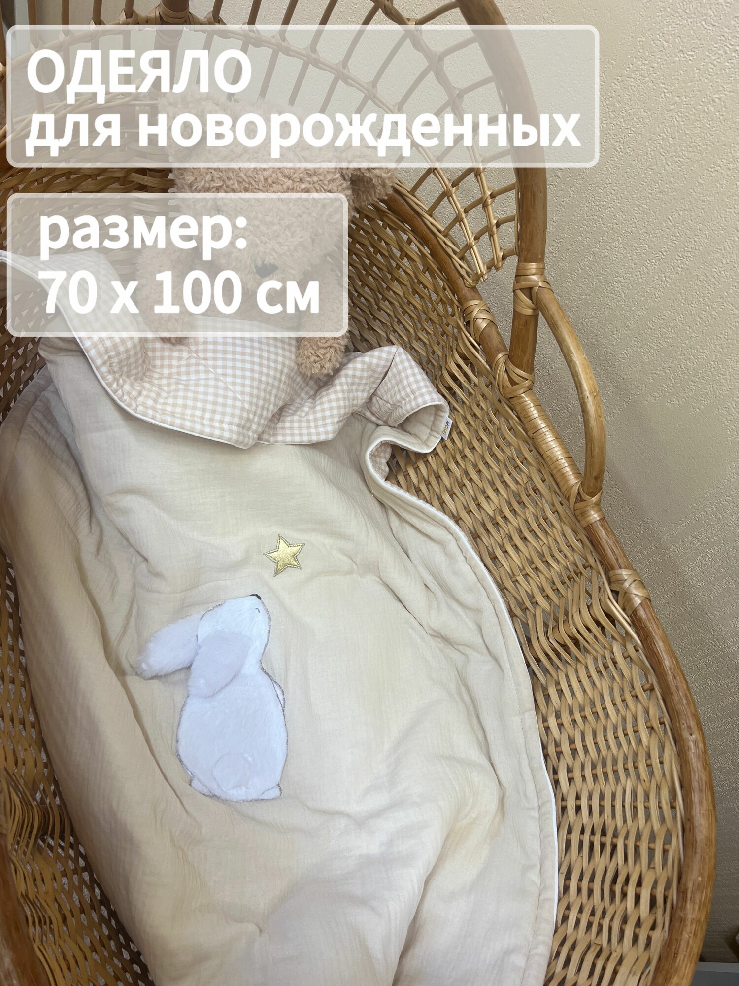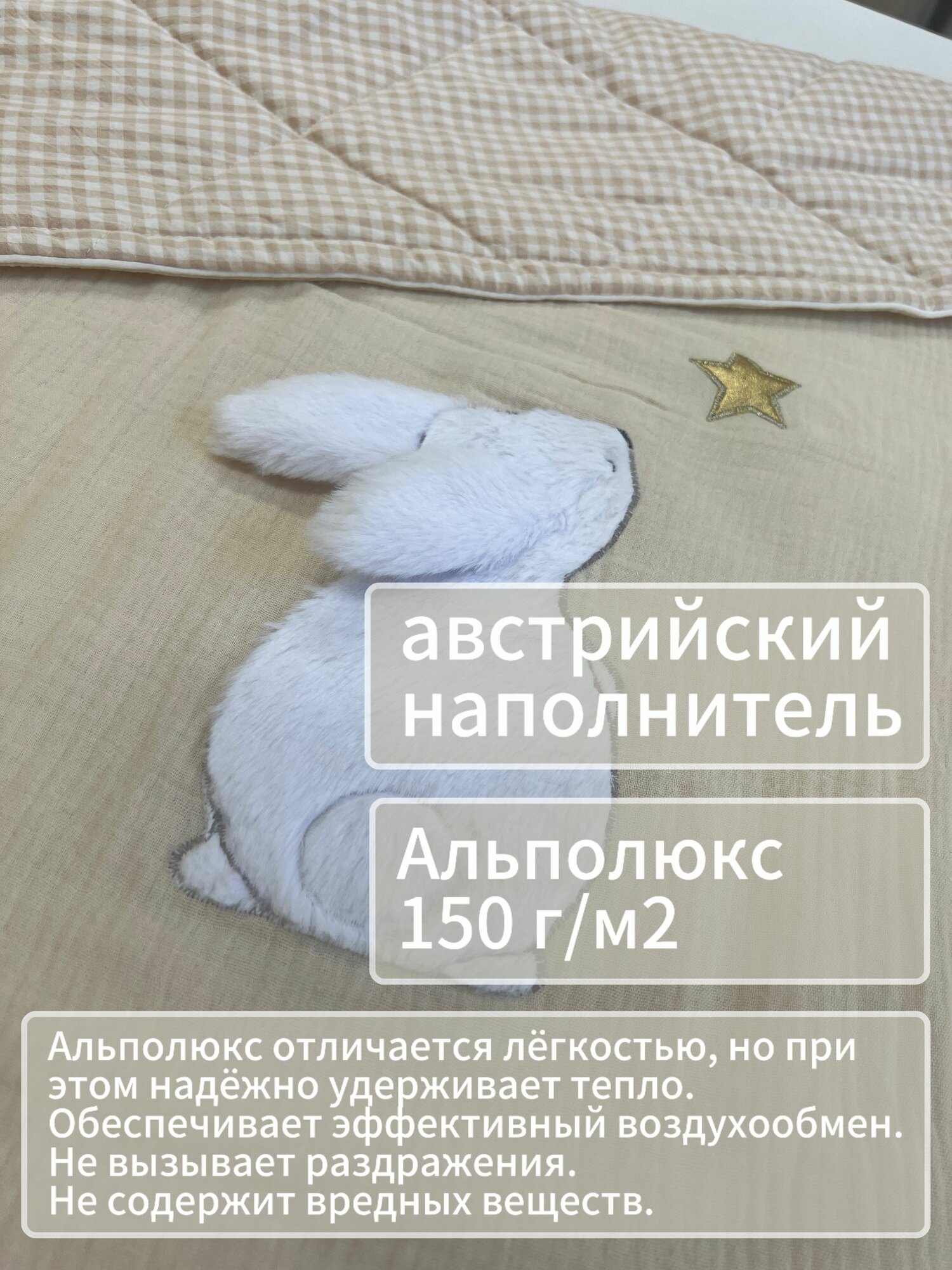 Одеяло детское для новорожденного в кроватку Moms 70х100 муслин 100% хлопок всесезонное стеганое гипоаллергенное декоративные аппликации Зайчик на телесном Альполюкс 150 г/м2: сравнение цен, характеристики, фото, актуальное наличие и цены.
