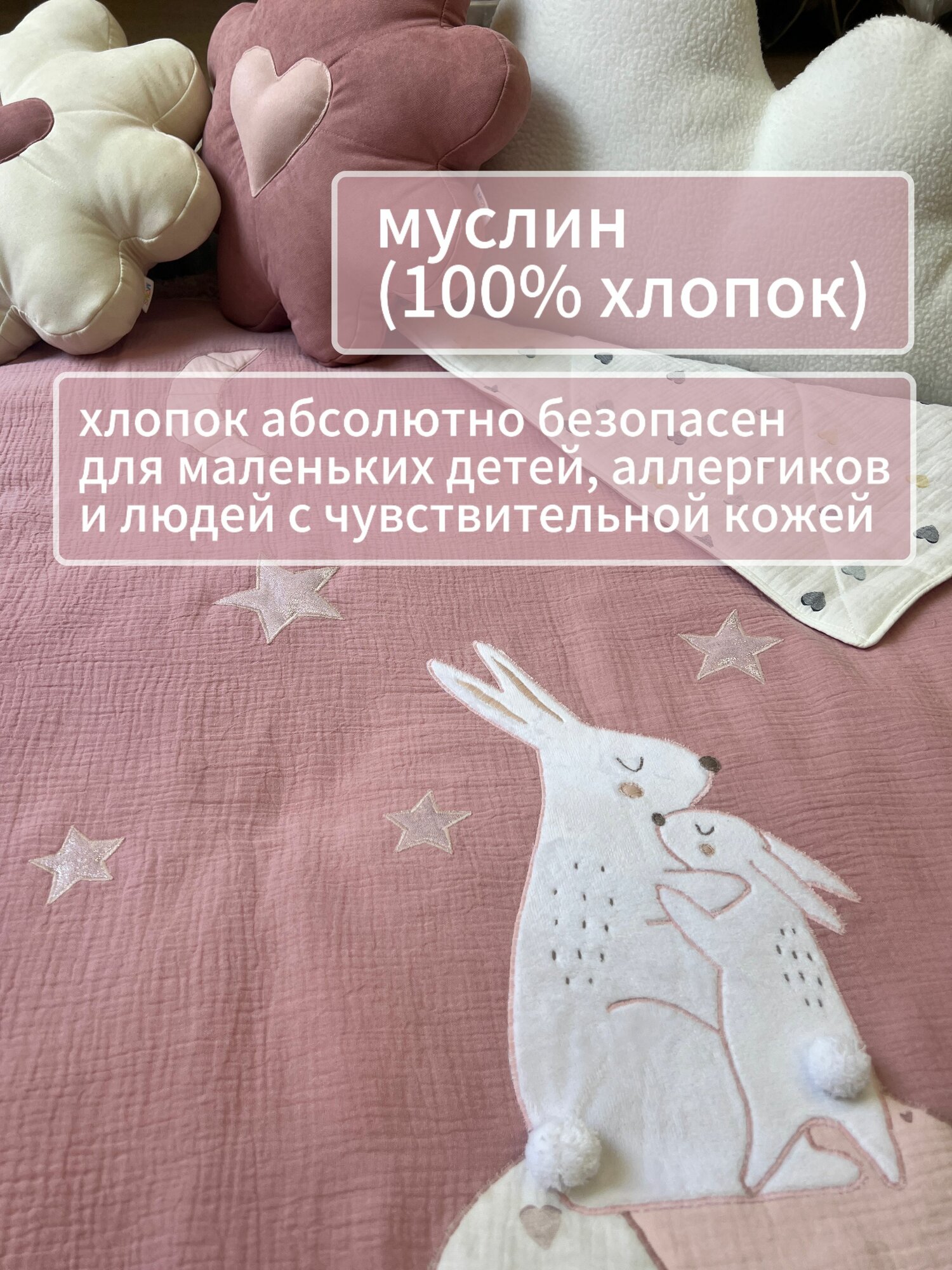li>Внутрерона выполнена из мягкого муслина (100% хлопка) с рисунком, дополняющим основной сюжет