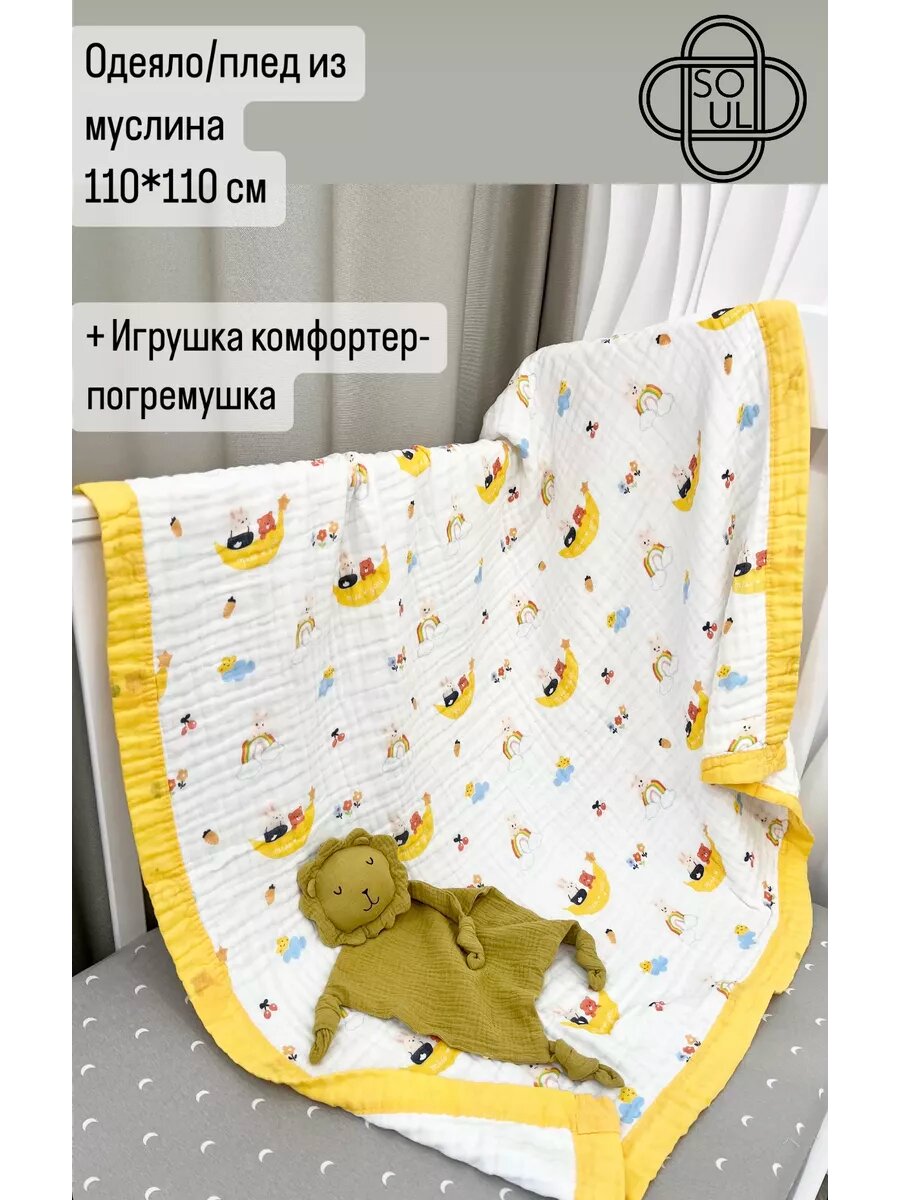 Одеяло муслиновое (6-ти слойное) + игрушка-комфортер «Лев»: сравнение цен, характеристики, фото, актуальное наличие и цены.