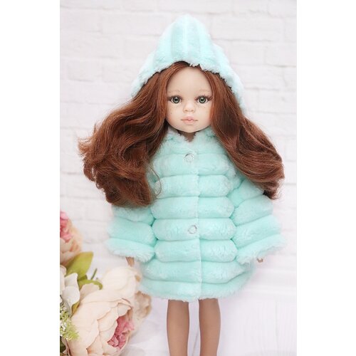 Красивая, модная шубка из искусственного меха с капюшоном на подкладе и с застежкой на металлических кнопках для кукол 32-35 см, подходит для кукол Паола Рейна, Видал Рохас, Бержуан и других подходящих кукол с обхватом талии не более 14 см.