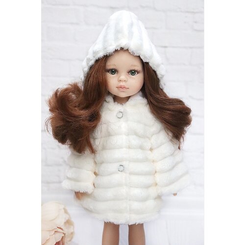 Красивая, модная шубка из искусственного меха с капюшоном на подкладе и с застежкой на металлических кнопках для кукол 32-35 см, подходит для кукол Паола Рейна, Видал Рохас, Бержуан и других подходящих кукол с обхватом талии не более 14 см.
