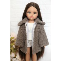 Красивая, модная шубка из искусственного меха "Ягнёнок" с воротником на подкладе и с застежкой на металлических кнопках для кукол 32-35 см, подходит для кукол Паола Рейна, Видал Рохас, Бержуан и других подходящих кукол с обхватом талии не более 14 см.