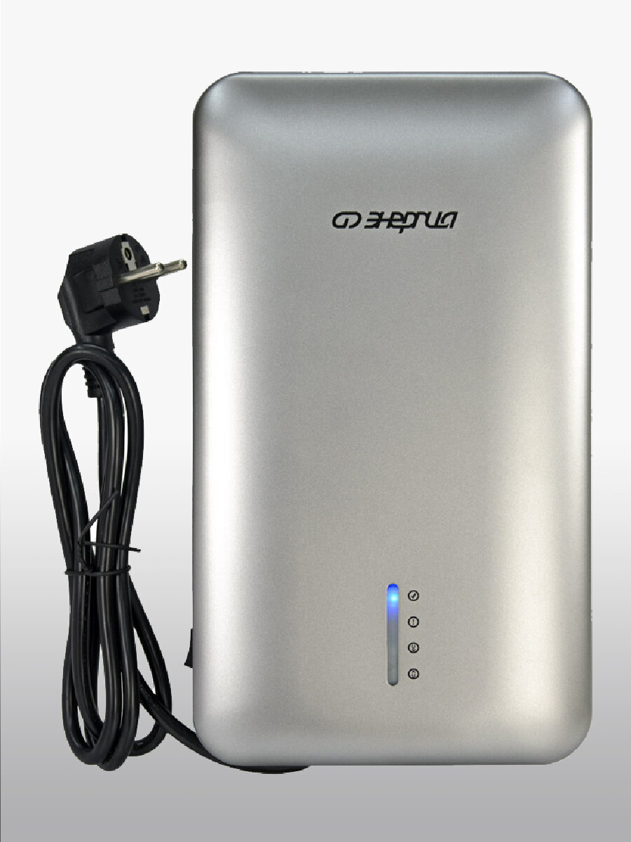Инверторный (0 мс) стабилизатор напряжения 220 или 230 В с точностью 2%, подключение к вводной сети через кабель с евровилкой, подключение нагрузки через евророзетку