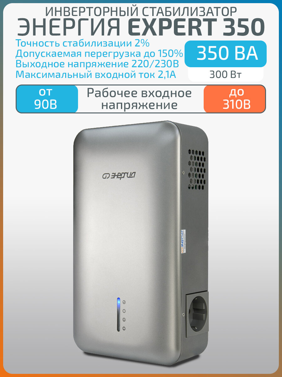 Купить Однофазный инверторный стабилизатор напряжения Энергия Expert 350 ВА, 300 Вт, 220/230 В, 2% с доставкой по всей России. Однофазный инверторный стабилизатор напряжения Энергия Expert 350 ВА, 300 Вт, 220/230 В, 2%: сравнение цен, характеристики, фото, актуальное наличие и цены.