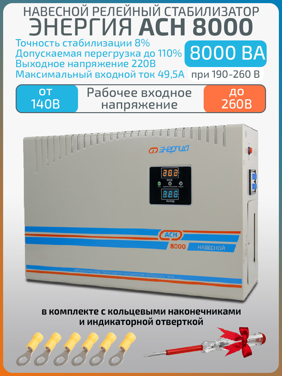 Однофазный релейный стабилизатор напряжения Энергия АСН 8000 ВА, 220 В, настенный, навесной, для квартиры и для дома: сравнение цен, характеристики, фото, актуальное наличие и цены.