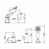 | Комплектация | гибкая подводка, держатель лейки, душевая лейка, душевой шланг, излив, смеситель |