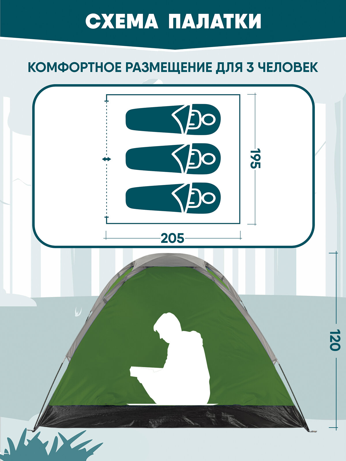 Купить Палатка туристическая 3 местная JUNGLE CAMP Riva Dome 3. Москитная сетка на двери. Легкая. Простая и быстрая установка. с доставкой по всей России.