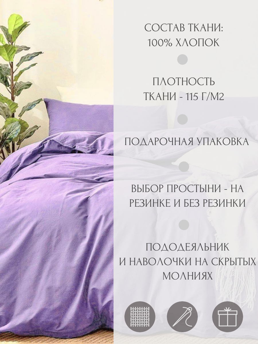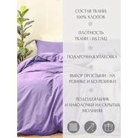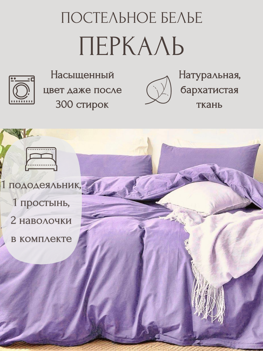 Однотонное постельное белье P019-E-50-160, Лаванда цвет, Перкаль 100% хлопок, Евро, наволочки 50×70, с простыней на резинке 160х200 см: сравнение цен, характеристики, фото, актуальное наличие и цены.