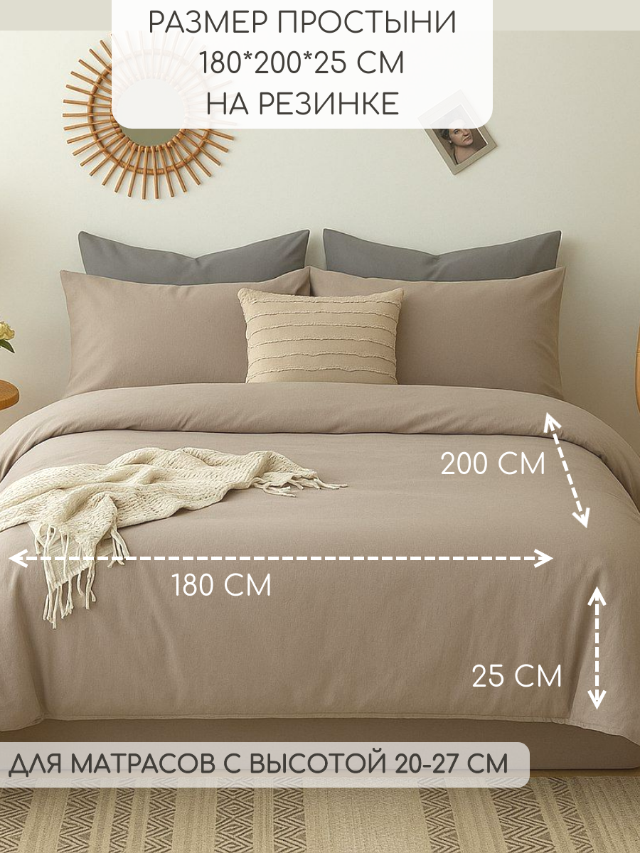 Однотонное постельное бельё, цвет Пудрово-бежевый, Евро, перкаль, наволочки 50×70, с простыней на резинке 180х200 см: сравнение цен, характеристики, фото, актуальное наличие и цены.