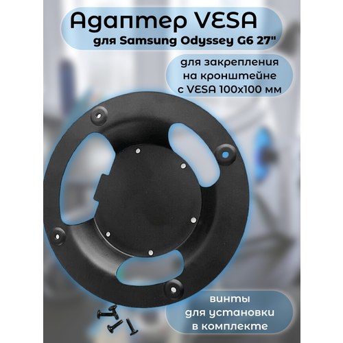 Адаптер VESA - переходник для монитора Samsung Odyssey G6 диагональю 27 дюймов. Модель имеет углубление в районе крепления VESA, из-за чего игровой монитор может не получаться закрепить на настольный или настенный кронштейн. Адаптер закрепляется на мониторе и дает возможность фиксации на кронштейне для удобного регулирования по высоте, наклона, вылета вперед, организации рабочего и игрового пространства. Аксессуар специально разработан для монитора Samsung Odyssey G6 LS27BG650EIXCI и S27BG650EI. Адаптер поддерживает стандарт VESA 100x100 мм и изготовлен из прочного металла, что обеспечивает долговечность и надежность. В комплекте идут 8 винтов для удобной установки. 4 винта меньшей длины предназначены для крепления адаптера к монитору (внутренние отверстия). 4 винта большей длины - для крепления к кронштейну (внешние отверстия). Перед покупкой и установкой убедитесь, что ваш настольный или настенный кронштейн поддерживает стандарт VESA 100х100 и подходит для крепления монитора Odyssey G8 по диагонали и весу. Внимание! Переходник подходит только для модели Samsung Odyssey G6 LS27BG650EIXCI и S27BG650EI