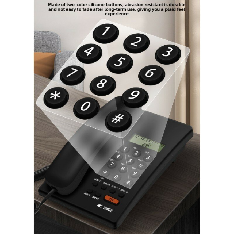 Office desk fixed line telephone with call id and phonebook storage for business environment, white