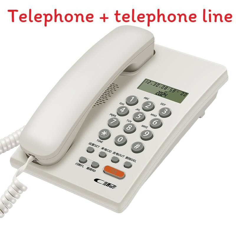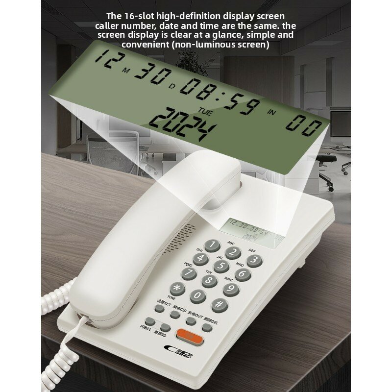 Office desk fixed line telephone with call id and phonebook storage for business environment, white