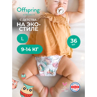Offspring Трусики-подгузники, L 9-14 кг, 36 шт, расцветка Совы: сравнение цен, характеристики, фото, актуальное наличие и цены.