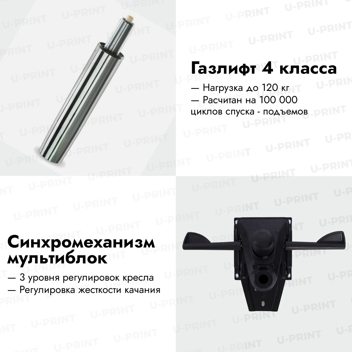 блокировка колес, механизм качания, мягкие подлокотники, мягкое сиденье, прорезиненные колесики, спинка из сетки, фиксация механизма качания, фиксация спинки в любом положении