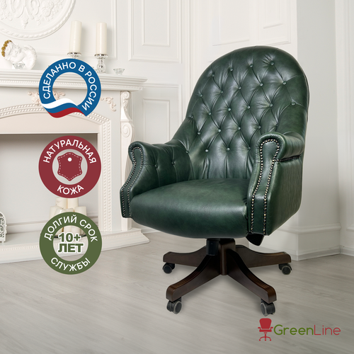 Купить Офисное кресло руководителя базель, кожаное, дерево, 200 кг, зеленое (Pino kelato) с доставкой по всей России.
