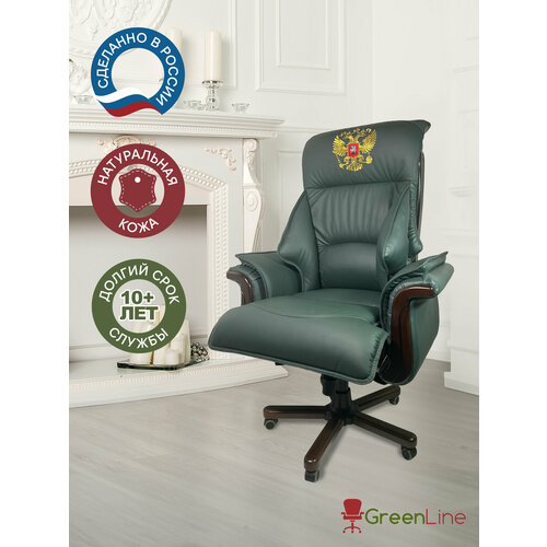 Офисное кресло руководителя Давос с гербом, натуральная кожа, зелёное матовое (Verde): сравнение цен, характеристики, фото, актуальное наличие и цены.