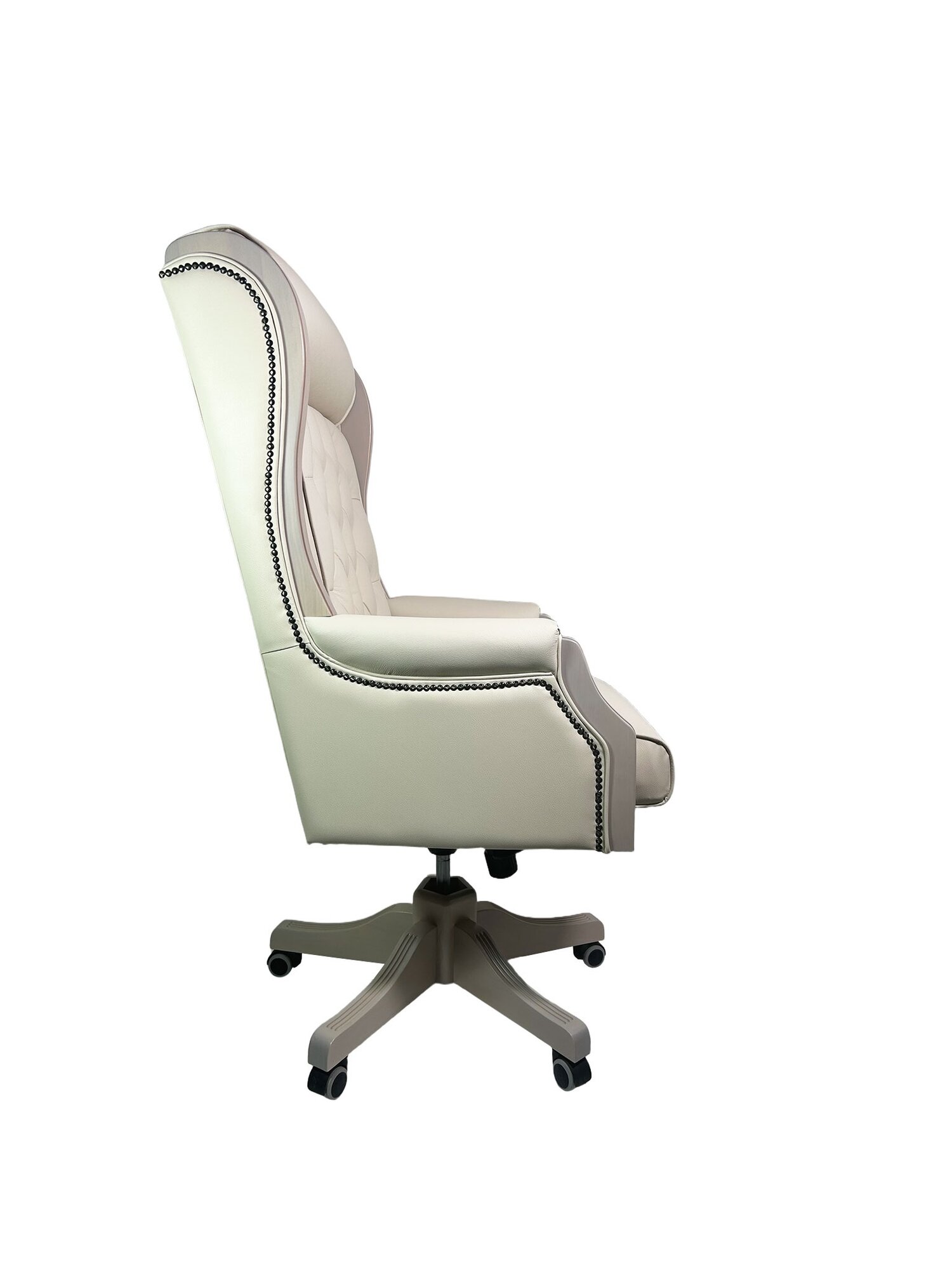 Купить Офисное кресло руководителя Князь (Ришар), натуральная кожа, массив дерева, кремовый (Savanna)/белый дуб с доставкой по всей России.