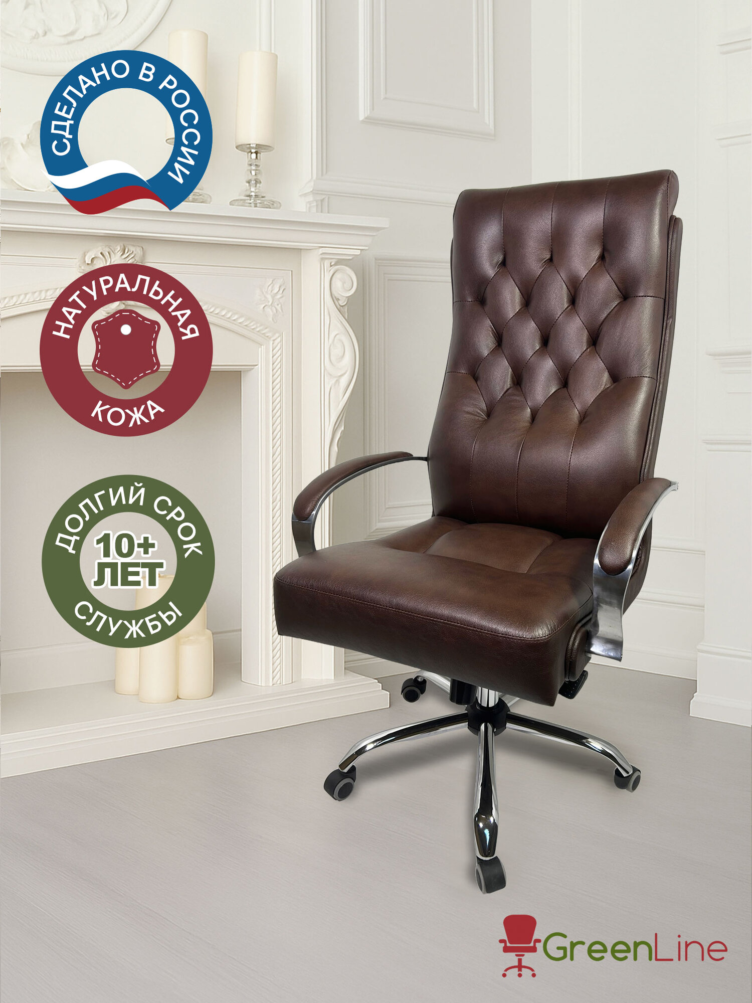 Купить Офисное кресло руководителя компьютерное Берн, кожаное, металл, коричневое с доставкой по всей России.