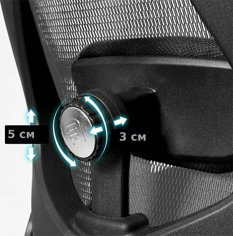 высоты подголовника, высоты подлокотников, высоты сиденья, жесткости качания, наклона спинки, угла наклона подголовника