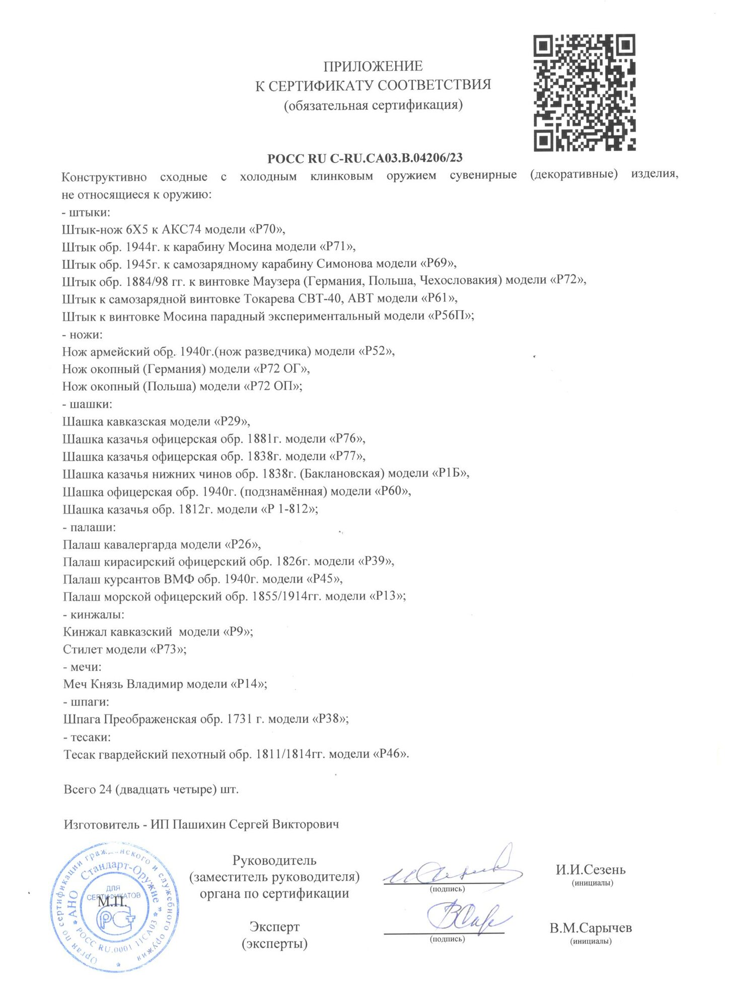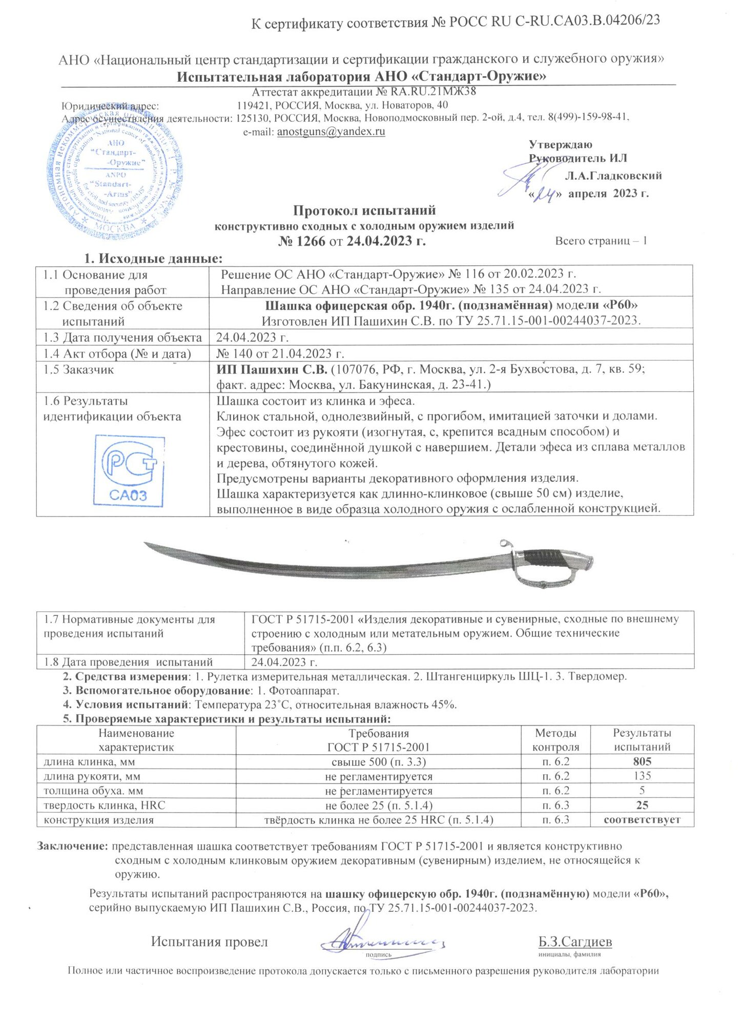 Шашка офицерская подзнаменная образца 1940 г. Шашка изготовлена из кованой стали 65г (рессорная), Ножны изготовлены из дерева, латуни и натуральной кожи. Ручная работа. Сталь: 65Г Материал рукояти: дерево или пластик, латунь Материал ножен: дерево, кожа, латунь Шашка не является холодным оружием, в комплекте прилагается сертификат. Шашка не заточена, но ее можно заточить самостоятельно, сталь высокого качества, долго держит заточку.