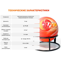 * Не требует обслуживания и специальной настройки перед использованием. Достаточно взять Шар-AFO и кинуть в огонь. Огнетушитель сработает самостоятельно и потушит огонь.