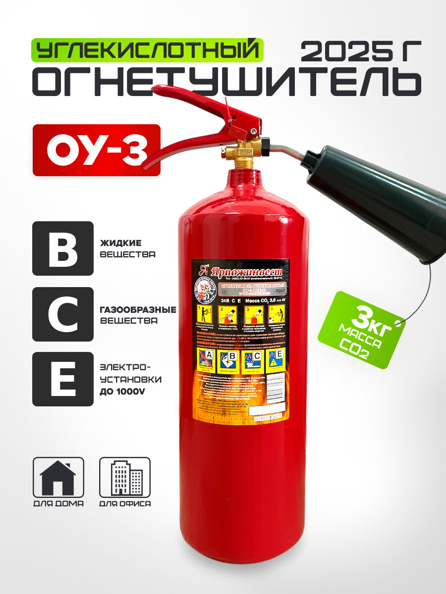 Купить Огнетушитель углекислотный ОУ-3 Ярпожинвест, 2025, BCE, 3 кг с доставкой по всей России. Огнетушитель углекислотный ОУ-3 Ярпожинвест, 2025, BCE, 3 кг: сравнение цен, характеристики, фото, актуальное наличие и цены.