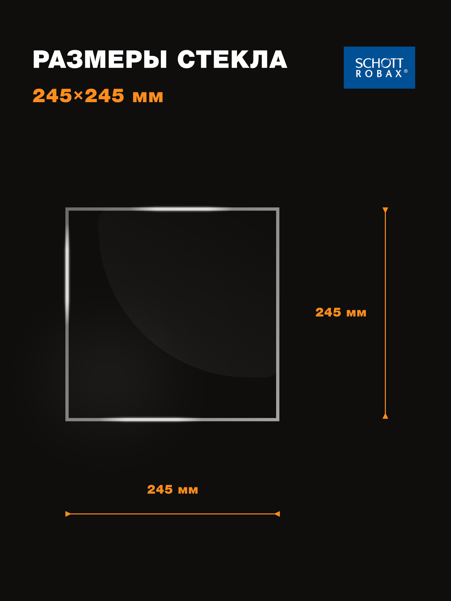 Огнеупорное стекло для печи-камина Мета Нева. Размер стекла: 245х245 мм. Огнеупорное (жаростойкое, огнестойкое) стекло для печей в баню и сауну, отопительных печей и каминов. Жаропрочная стеклокерамика Schott Robax для печи, производство Германия, оригинал. Рабочая температура: 750 градусов. Толщина стекла: 4 мм.