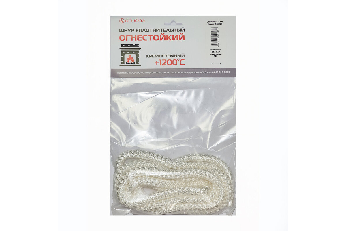 Купить Огнеза Термостойкий кремнеземный шнур, ШКН 12 мм х 2 м 107484 с доставкой по всей России.