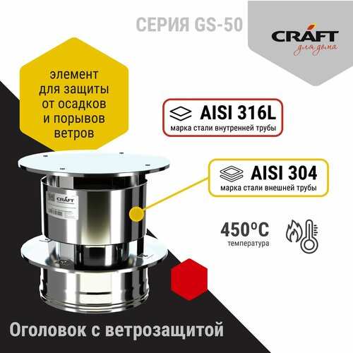 Элемент дымохода Оголовок с ветрозащитой Craft GS-50 (316/0,5/304/0,5) Ф130х230: сравнение цен, характеристики, фото, актуальное наличие и цены.