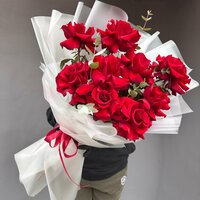 Огромные 11шт (на фото 10шт) Французские розы красные букет экс арт.13865