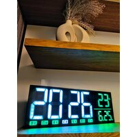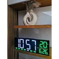 Купить ОГРОМНЫЕ 453х163 цифровые настенные часы с пультом. Большие цифры. Дата, температура, автояркость, будильник, календарь с доставкой по всей России.