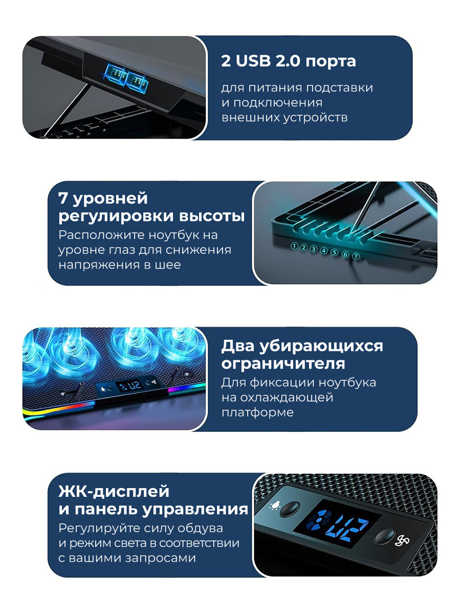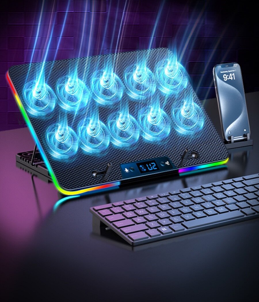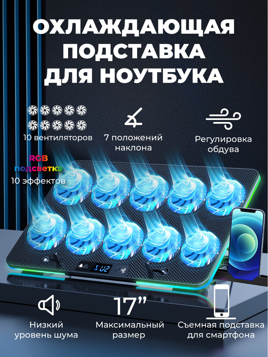 Охлаждающая подставка для ноутбука до 17″, 10 вентиляторов, подставка для смартфона, RGB: сравнение цен, характеристики, фото, актуальное наличие и цены.
