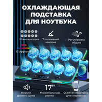 Купить Охлаждающая подставка для ноутбука до 17″, 10 вентиляторов, подставка для смартфона, RGB с доставкой по всей России.