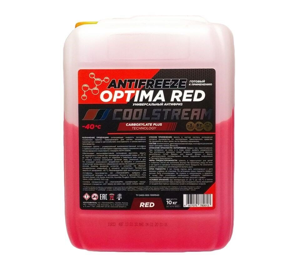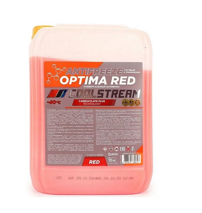 Охлаждающая жидкость антифриз Coolstream Optima Red красный 10 литров: сравнение цен, характеристики, фото, актуальное наличие и цены.