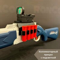 | Подробная комплектация | Дробовик 1 шт. Приклад 1 шт. коллиматор 1 шт. Гильзы для пуль 9 шт. пули с присосками 10 шт. Держатель для патронов 1 шт. Лазерный прицел 1 шт. Инструкция 1 шт. Очки 1 шт. |