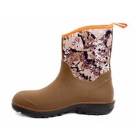 Неопреновые полусапоги, обеспечивают отличную защиту от воды, при этом сохраняя прекрасные дышащие способности. Средней высоты голенище обеспечивает комфорт и скорость одевания и снятия сапог, в то же время сохраняя возможность передвижения по мокрой невысокой траве, сырой земле, мелким ручьям. В данной модели применяется технология, позволяющая создать единую бесшовную оболочку для повышения долговечности и снижения веса на 30%.• 100% водонепроницаемость