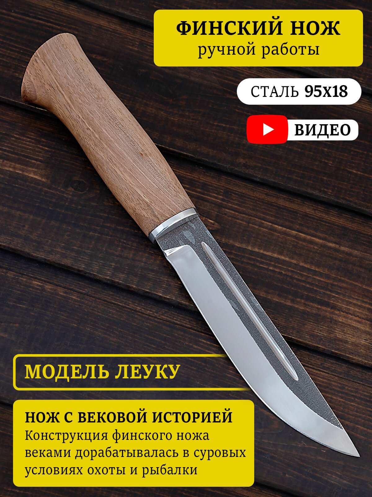 Охотничий финский нож из кованой стали 95х18 с рукояткой из Орехового дерева: сравнение цен, характеристики, фото, актуальное наличие и цены.