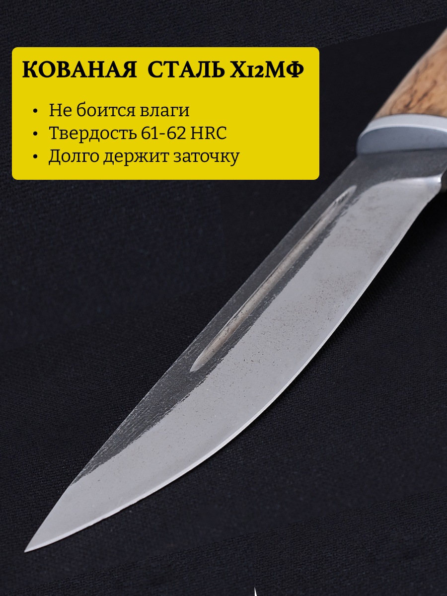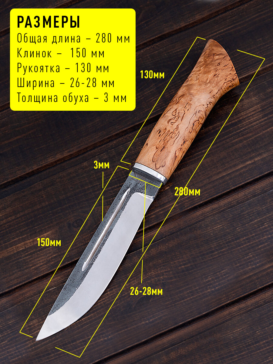 Охотничий финский нож из кованой стали Х12МФ с рукояткой из Карельской березы: сравнение цен, характеристики, фото, актуальное наличие и цены.