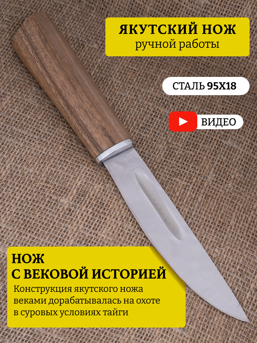 Охотничий нож якутский из кованной стали 95х18 с ножнами: сравнение цен, характеристики, фото, актуальное наличие и цены.
