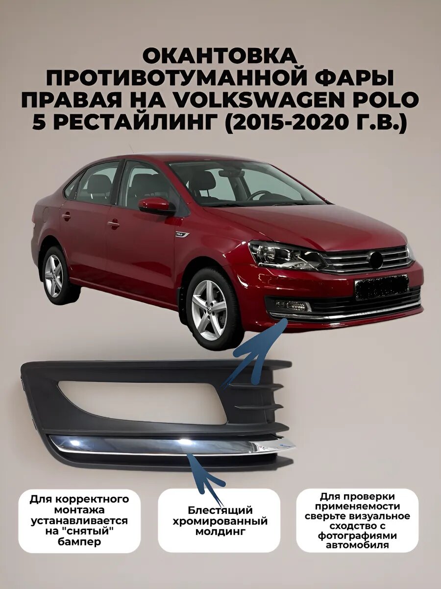 Окантовка противотуманной фары правая на Volkswagen Polo 5 (2015-2020 г. в.): сравнение цен, характеристики, фото, актуальное наличие и цены.