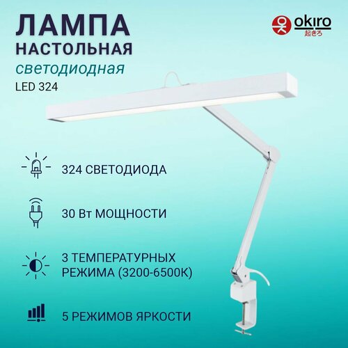 OKIRO / Лампа настольная светодиодная бестеневая LED 324 с диммером яркости -белый / светодиодный светильник со струбциной: сравнение цен, характеристики, фото, актуальное наличие и цены.