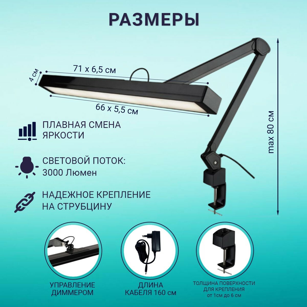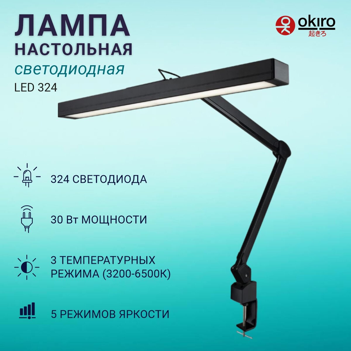 OKIRO / Лампа настольная светодиодная бестеневая LED 324 с диммером яркости — черный / светодиодный светильник со струбциной: сравнение цен, характеристики, фото, актуальное наличие и цены.