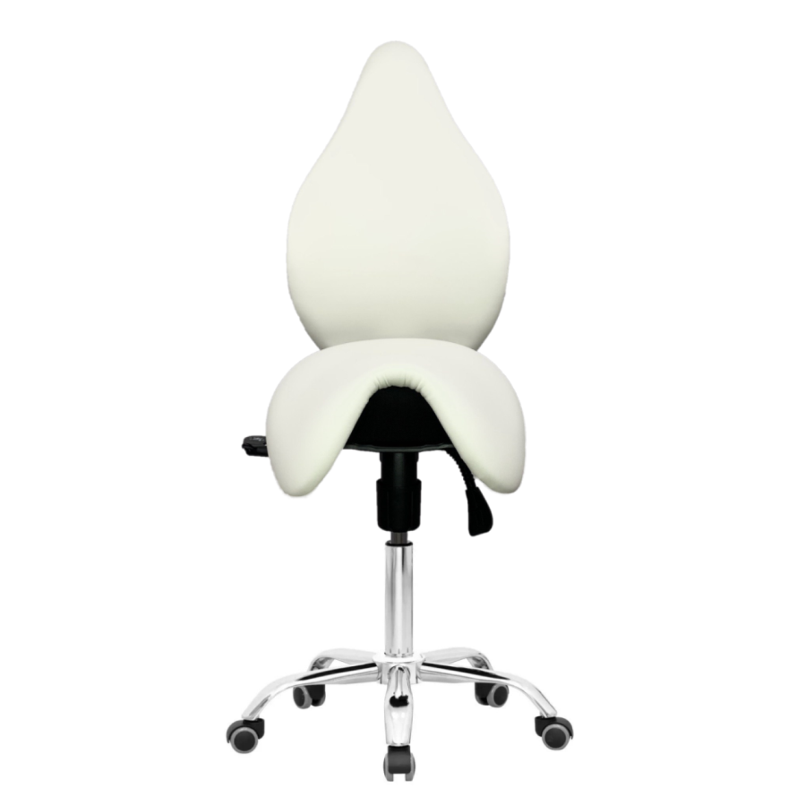 Так как посадка стула повторяет седло для верховой езды, тело располагается абсолютно аналогично. Это естественная сидячая поза для человека, когда ноги расставлены в стороны, а угол между бедрами и позвоночником получается примерно 135°, благодаря такому углу, ткани в паховой зоне не пережимаются. За счет наклонённого сиденья давление происходит на тазовые бугры, что уменьшает нагрузку на 20% и не пережимает соседние ткани ног и ягодиц. При посадке на седло не возникает желание сутулиться, спина выпрямляется, а значит, раскрывается грудная клетка, давление в брюшной полости становится меньше и улучшается работа пищеварительной системы. Сама раскрытая позиция способствует хорошему настроению. Эргономичная форма седла, позволяет задать правильный изгиб позвоночника так, что вы просто не сможете сидеть на нем неправильно.